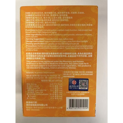 破壁靈芝孢子粉硒膠囊 (BROKEN WALL GANODERMA SPORE POWDER SELENIUM CAPSULES) 400Mg*90粒/瓶 ..